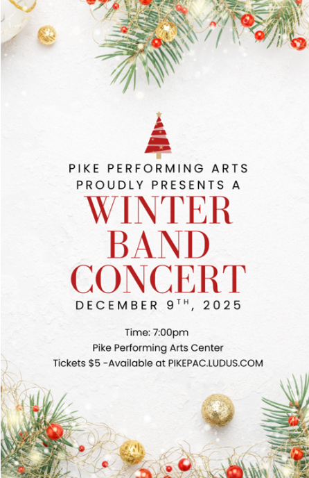 The Pike Performing Arts Department is one of the largest and most comprehensive in the state with four concert bands, two jazz bands, three orchestras, eight choirs, numerous theatrical groups, indoor percussion, winter guard, pep band, marching band, and dancers. In addition to these opportunities the department also offers an AP music theory course, IB Music, piano keyboard, and percussion classes.